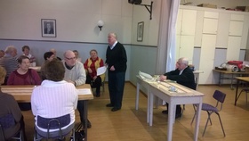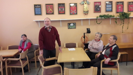 Ordförande Harding Lindholm öppnade mötet med att önska all välkomna och en önskan om ett gott nytt å. Efter det uppvaktades vår medlem Ralf Friberg för det omfattande arbete, nationellt och internationellt, som han gjort för oss pensionärer. Internationellt har han representerat Pensionstagarnas Centralförbund i Europeiska Seniororganisationen som styrelsemedlem åren 2004 till 2014. I organisationen AGE som ersättare under samma tid. I Nordiska samarbetskommitténs styrelse 2004 till 2013. I förbundet har Ralf suttit i styrelsen 2004 till 2007, sedan som fullmäktiges ordförande under tiden 2007 till 2010 och nu senast som vice ordförande 2011 till 2014.