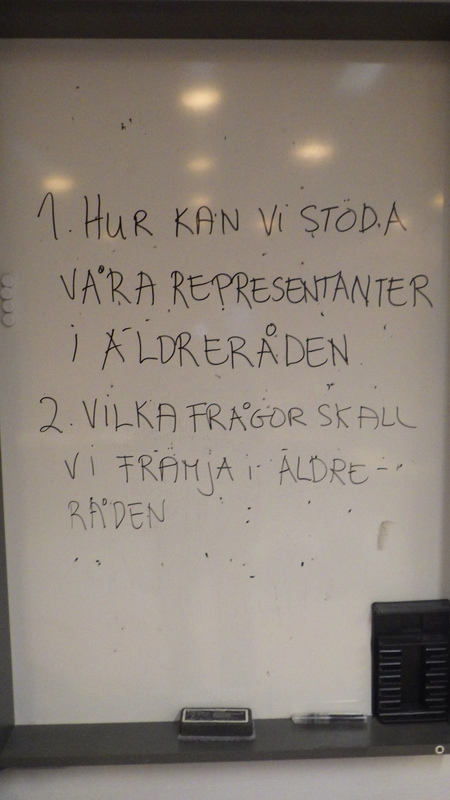 Diskussionen om de numera lagstadgade äldrerådens roll var livlig, först i grupparbeten och sedan i salen. Individens frihet betonades många gånger, både då det gällde att få bo hemma så länge man klarar sig, men också rätten till ett ändamålsenligt boende när man inte längre klarar sig hemma.