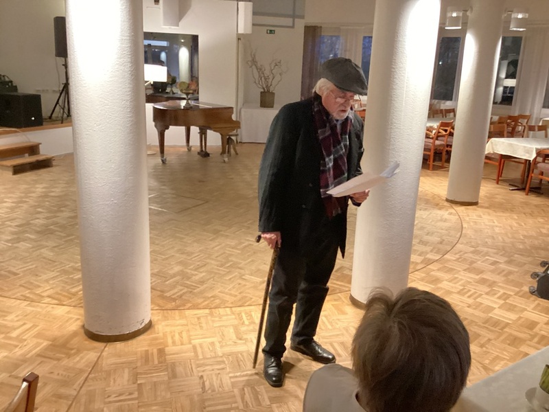 Han vände sig sedan till Berndt Pihlström från Ekenäs som under kvällens lopp skulle underhålla gästerna med sång och musik.