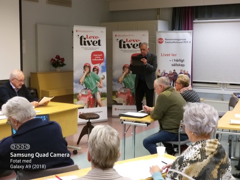 Onsdagen den 16 oktober höll Pensionstagarnas centralförbund svenska distrikt sitt höstmöte. Stig Kumlin från Vanda återvaldes till ordförande.