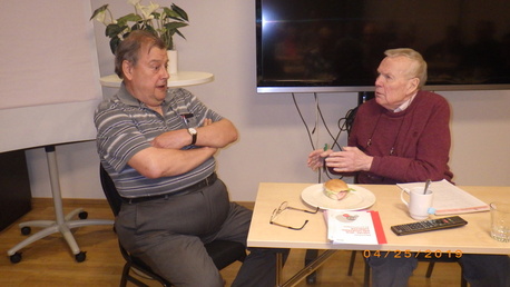 I den traditionella intervjustunden var det tänkt att Alf-Erik Helsing skulle intervjua Roger Sundén från Vasa Pensionstagare men då Roger hade förhinder övertalades Börje Fagerstedt från Borgå Svenska Pensionstagare att ställa upp som intervjuoffer, något som uppskattades stort. Problemet var bara att tiden inte räckte till så en del får vi kanske höra senare.