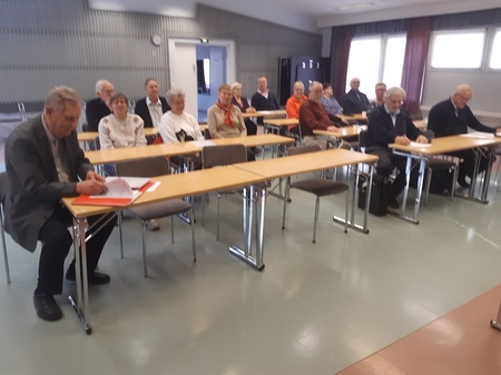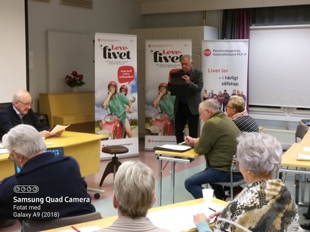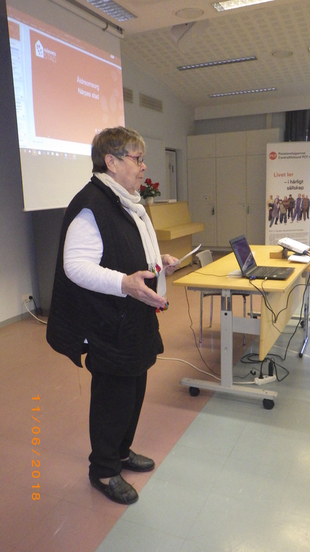 Som föredraganden fungerade ordförande Ralf Friberg, vicerektor Marjaana Liehu-Törrö, Christina Lindell Pensionsskyddscentralen Bengt Sibbmark Pensionstagarnas Riksorganisation (PRO) Sverige. Per-Erik Nelin intervjuades av ordförande Ralf Friberg. Dessutom talade psykoterapeut Lili-Ann Junell-Kousa och, grundtrygghetsdirektör Raseborg Arne Nummenmaa .